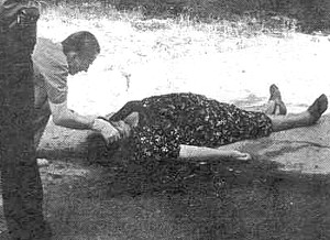 Вдруг слышу крик парня: «Что вы делаете?». Оглянулась, смотрю — мужчина в кепке рубит сзади по голове тетю Марию. Она даже ойкнуть не успела. Упала ничком на асфальт. Бил он ее кухонным топором для разделки мяса, такой с одной стороны лезвие, с другой обушок делать отбивнушки. Потом и обухом бил.