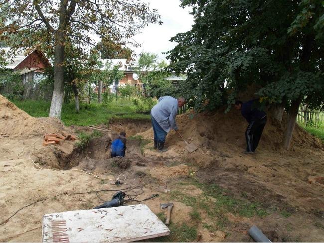 Нужно отметить, что работы по строительству велись очень вяло. Группа рабочих… рыла все те же выгребные ямы. Ни о каком подключении к центральной канализации не было и речи!