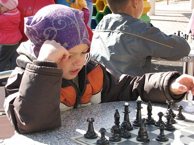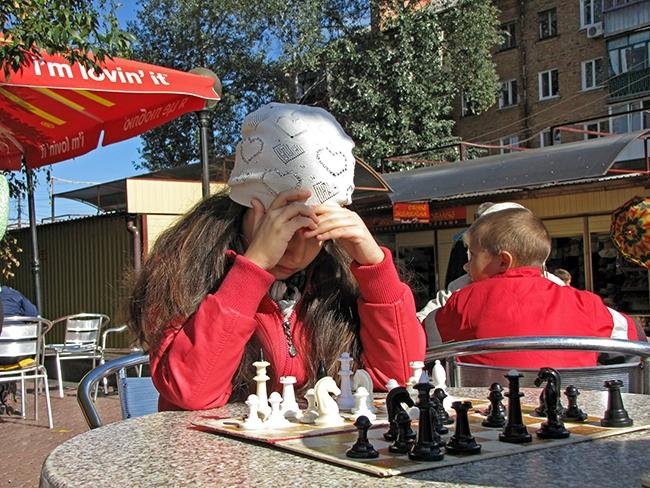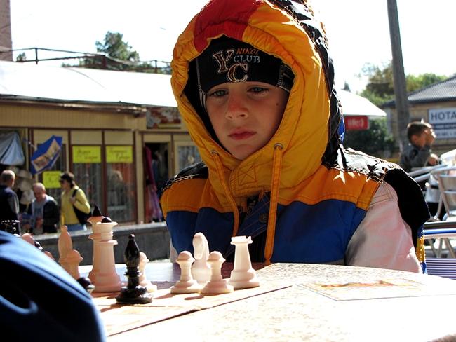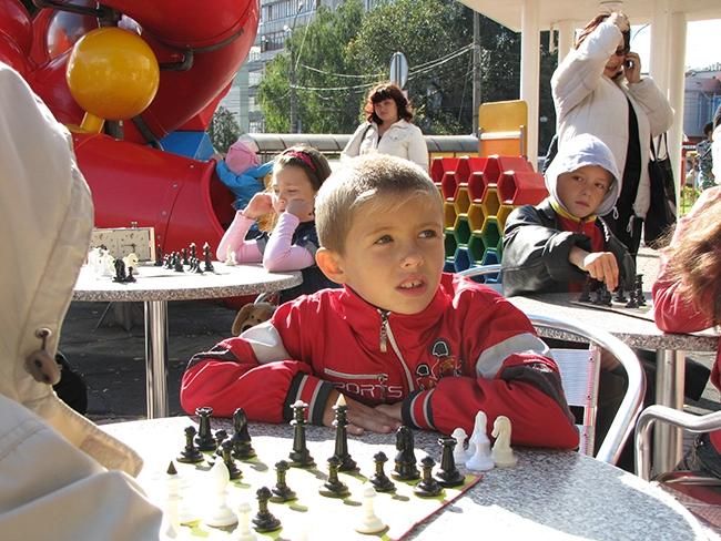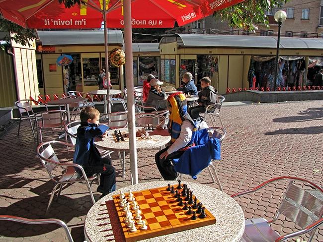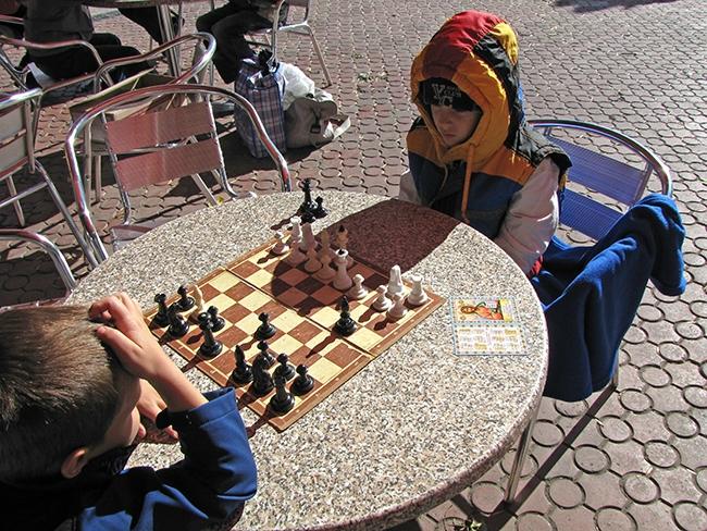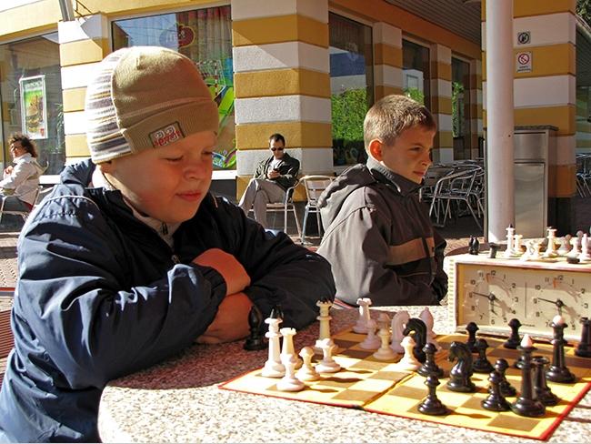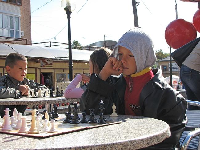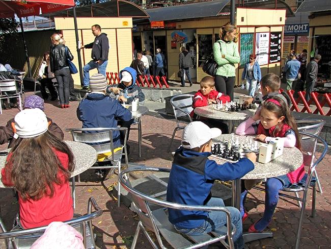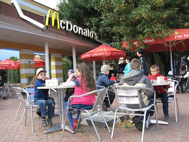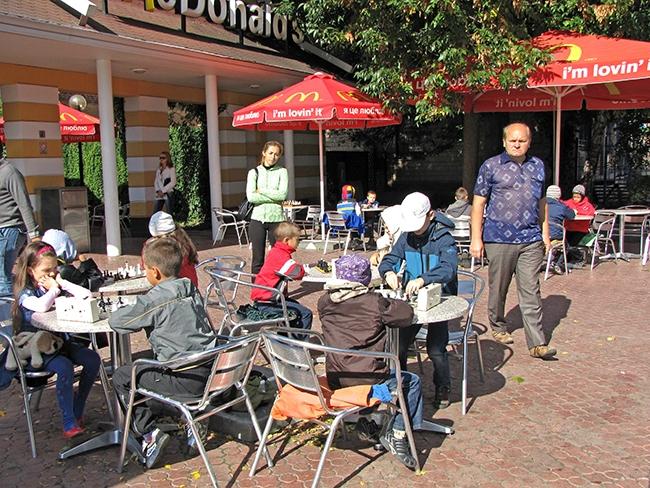 Жители города, спешащие этим прохладным воскресным утром на центральный рынок, обращали внимание на детей, которые расположились на летней площадке ресторана быстрого питания «МакДональдс» и сосредоточено склонились над шахматными досками.