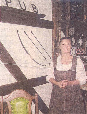 Усевшись за мощный деревянный стол в зале, огляделись. Новшества есть. На стене «робингудские» атрибуты — декоративный лук и две стрелы. Со стен целятся из луков голливудские звезды в роли Робин Гуда: Рассел Кроу и красавчик Кевин Костнер.