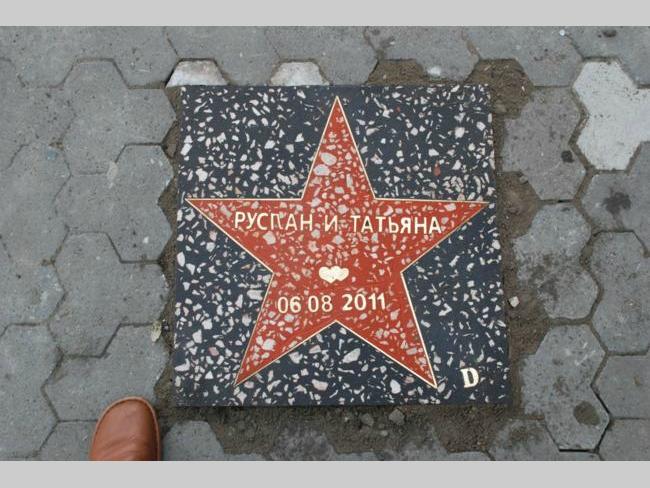 • Поддерживаю. У ЗАГСа - самое место. Пусть агентство (инвестор) мраморной плиткой без звезд обустроит определенную площадь, которая органично вписалось бы у входа в ЗАГС. Затем меняли бы простые плитки на плитки с символикой - и все было бы красиво :)