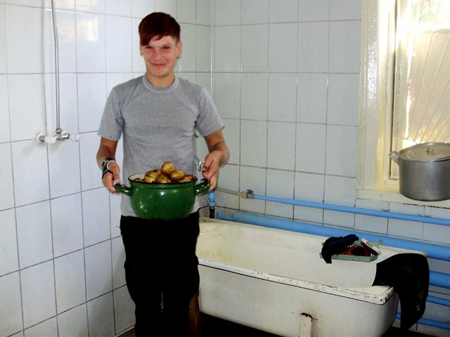 - Я потрапив сюди завдяки соціальній службі. Я сирота, жив в інтернаті у Городні, і коли закінчив його, мене направили вчитися до училища на слюсара. Але я не хотів вчитися крутити гайки. Я дуже люблю готувати, і моя давня мрія — вивчитися на кухаря-кондитера. Я просив направити мене на цю спеціальність, але адміністрація сказала: “Вибач, будеш вчитися, на кого ми скажемо”. Тоді я з училища пішов, знову вчився у інтернаті в Чернігові, закінчив 11 класів. І знову я просився на кухаря, і знову мене направили на слюсаря. Я все це кинув, і уже жив де доведеться. Цього літа у мене вкрали всі документи в Козельці. Я звернувся до соціальної служби за допомогою, і мені там розказали про цей центр. У центрі я з вчорашнього дня, але лише за одну добу я можу сказати — тут чудово. Миколай Миколайович обіцяв допомогти поступити на кухаря, як тільки ми відновимо всі документи. Я сподіваюся, нарешті моя мрія дитинства здійсниться. Вона дуже важлива для мене, і я не хочу її продавати.