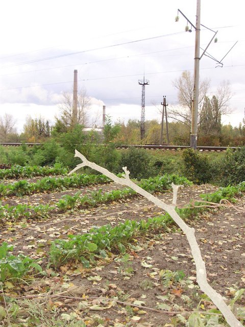 Виходить, і сюди вітри не доносять від труби ніяких шкідливих викидів? Чи може, народ наш, який звик на все скаржитися, понавигадував? Проходжу вулицю Високу далі, до залізничної колії і вперед до ТЕЦ. Всюди вздовж колії знаходяться городи, подекуди на них працюють люди, приводячи територію в порядок чи збираючи врожаї. Не знаю, як там із попелом від вугілля, але от так, в десятку метрів від залізниці, городина, на мою думку, точно буде шкідливою просто від викидів продуктів згорання двигунів тепловозів. Якщо, звичайно, у нас не всі поїзди на сьогодні рухаються на електриці. Вже напроти ТЕЦ на одному з городів зустрічаю двох жіночок і чоловіка, і вирішую поговорити з ними на свою тему.
