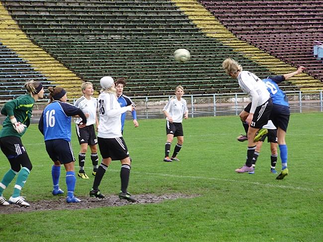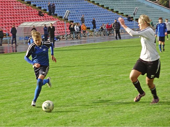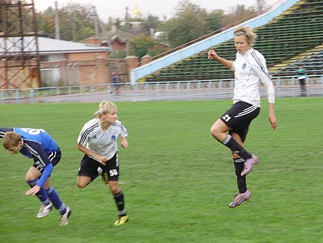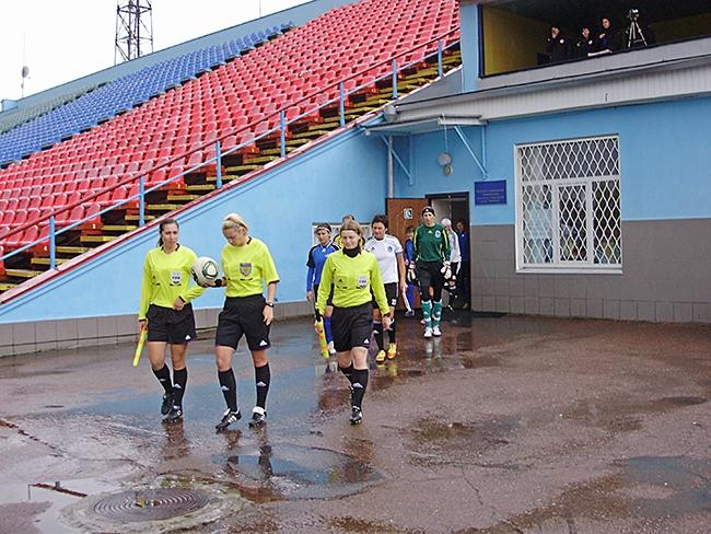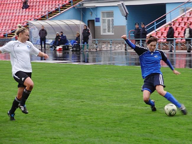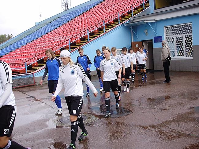 Харьковчанки, желая подтвердить свой статус чемпионок, с первых минут пошли в атаку. «Легенда», ничем не уступая своим именитым соперницам, отвечала быстрыми и опасными контратаками. На 44-й минуте, одну из таких атак, гости сорвали недозволенным приемом. Судья показала на 11-метровую отметку. К сожалению Химич не смогла реализовать этот пенальти. Так «провозившись» на мокром поле первый тайм, команды ушли на перерыв при нолях на табло.