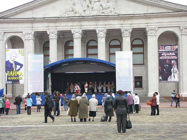 В этот осенний прохладный день, у сцены возведенной возле драмтеатра, было не многолюдно. Но стоило зазвучать первым мелодиям, как со всех сторон к сцене потянулись люди. Организаторы мероприятия подготовили праздничный концерт с участием творческих коллективов города.