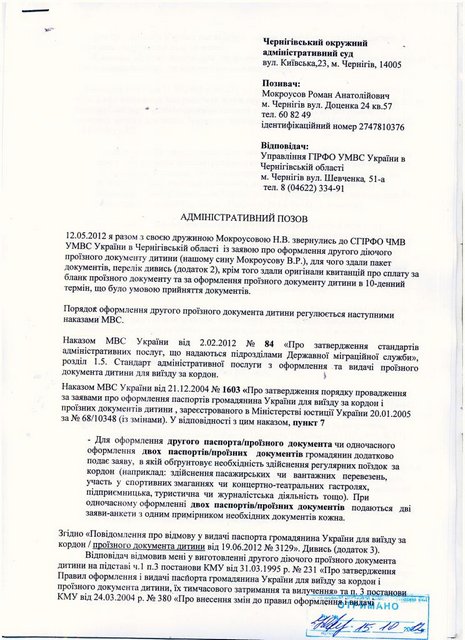 Данный иск является очередным шагом во всеукраинской кампании Демократического Альянса «Стоп беспределу в паспортных столах». Обоснованием исковых требований является нормы Декрета КМУ № 7-93 Постановления КМУ № 231, 380, 795 Приказы МВД № 1603 и № 84. Иск зарегистрирован в Черниговском окружном административном суде.