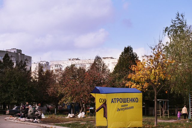 Осінь пов`язана традицйно із двома кольорами - жовтим і червоним у всіх їхніх відтінках. От ці кольори я і знімав, знаходячи на вулицях міста. А ще скоро у нас вибори, повз них я теж не пройшов. Але застерігаю розглядати ті мої фото як політичну рекламу будь-кого з кандидатів. Просто у їх агітвиробів виявилися осінні тональності.