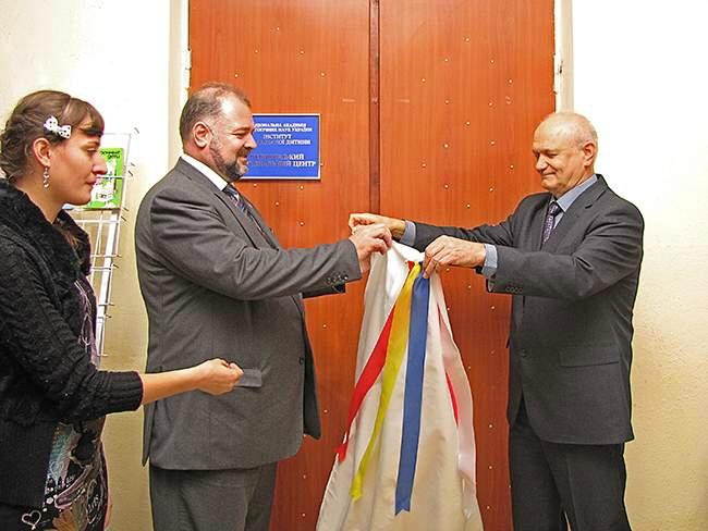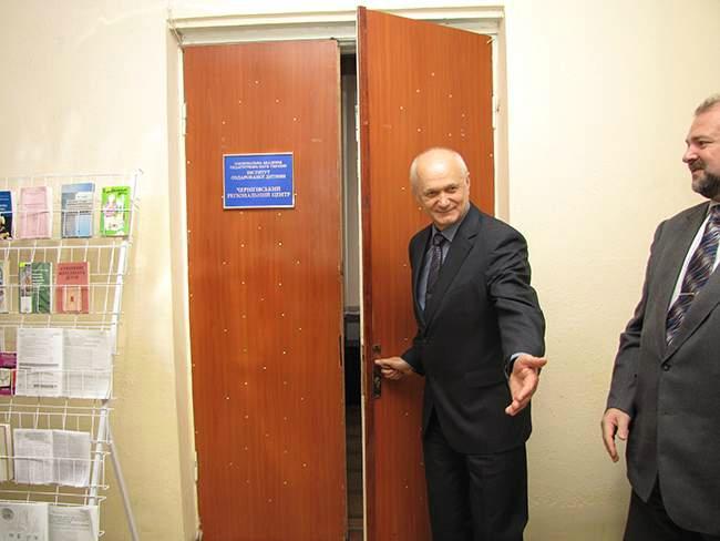 Володимир Камишин та Микола Носко під оплески присутніх урочисто відкрили двері, сповіщаючи про відкриття Чернігівського регіонального центру Інституту обдарованої дитини.
