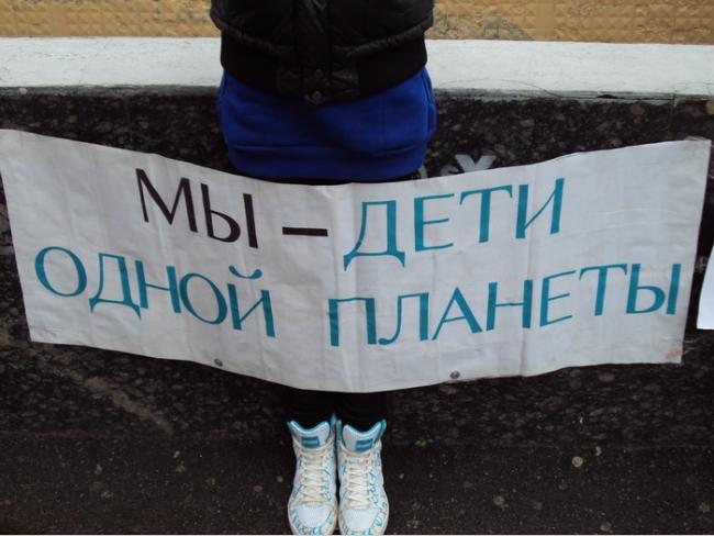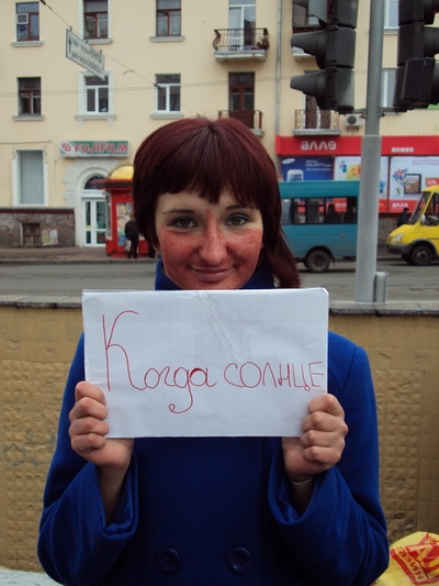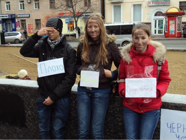 10 ноября примерно в 13:30 дня рядом с подземным переходом возле гостиницы «Украина» я увидел группу молодежи, лица которой были разукрашены в разные цвета, а в руках были таблички с надписями. Конечно же, я не смог не поинтересоваться, что это за акция, и чему именно она посвящена. В курс дела ввела девушка по имени Юлия.