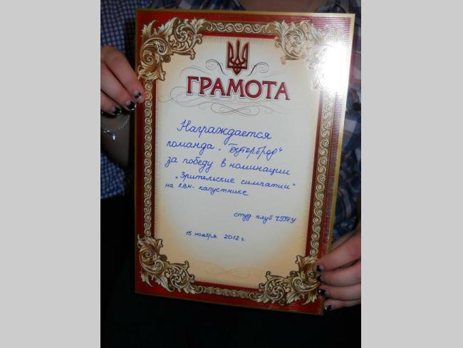 Обладателя главного приза зрители определили за пару минут, но с двух попыток. Притом, сделали это так эмоционально, что, стенам зрительного зала пришлось изрядно поднапрячься, дабы от мощного голосового штурма не развалиться и дать проекту успешно завершиться. В результате, обладателями титула «Команда зрительских симпатий» стала команда ЧДТУ. А в общем зачете победила дружба! Призы достались всем без исключения участникам. Поспособствовали этому партнеры проекта: боулинг-клуб «Аватар» и клуб «Diamond». Следующий студенческий супер-проект от творческой команды ЧГТУ 6-го декабря - «Мистер ЧГТУ».