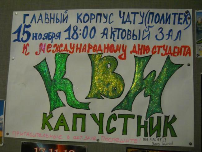 Повод – Международный День студента и посвященный этому музыкально-развлекательный проект – «КВН-Капустник». О нюансах проекта рассказала художественный руководитель ЧГТУ Елена Дейнеко. По ее словам, авторы и идейные вдохновители капустника – сама Елена и руководитель студклуба Руслана Яковлева. Родилась идея еще в конце августа, когда составлялся общеуниверситетский план культмассовых мероприятий. Название было выбрано именно таким, потому что КВНовские номера программы чередуются с выступлениями своих и приглашенных артистов.