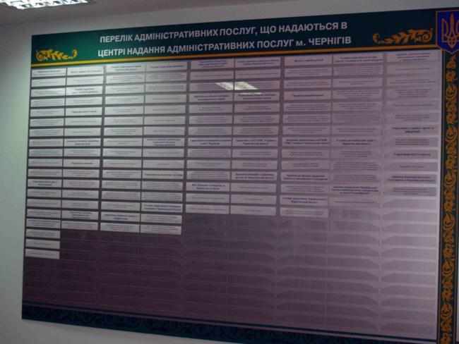 То есть, Центр должен предоставлять административные услуги (полный их перечень можно найти на сайте Черниговского городского совета), список которых, правда, был обнародован только 6 ноября 2012 года. Кроме этого, там же должны были работать Разрешительный центр, Регистрационная палата, отдел по обращениям граждан и социальным вопросам.