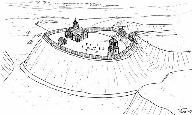Вірогідно, так виглядав Антоніївський монастир в Любечі в кінці ХVІІ ст. (реконструкція Бондаря О.М.)