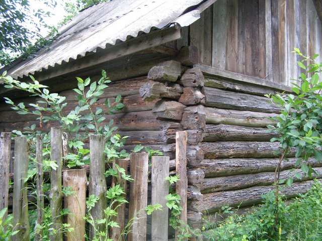 Господарська будівля в Любечі споруджена з колод церкви Іоакима та Анни у 1960-х рр.