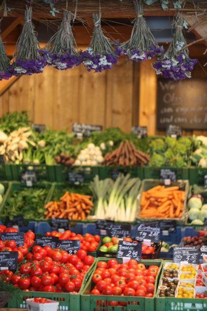 В магазинах у Німеччині є все. Собі я купую творчі принади, книги, одяг. Ціни для місцевих доступні, але, думаю, для туриста з України буде дорого. Продукти харчування недешеві теж. Німці дуже слідкують за здоровим харчуванням. Солодощі, молоко, соки, — в міру, бо цукор та лактоза мають поганий вплив на здоров`я. На сніданок їдять хліб із маслом та мармеладом, фрукти, мюслі з молоком. П'ють сік, каву чи чай. В обід - гаряче, салат, воду чи сік. Популярні страви із місцевої, а також італійської та східної кухні. Вечеря - хліб із маслом, сир, ковбасні вироби, салат, вода. Усе якісне та смачне, несвіжі продукти харчування не продають. Хіба що ціни інколи зависокі, наприклад, на м`ясні вироби. Та мене це не стосується, у Німеччині я стала вегетаріанкою.