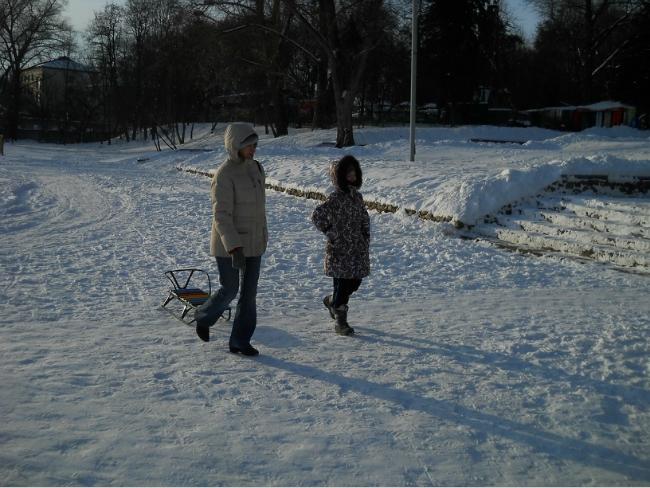 Мы за активный образ жизни. Сегодня открыли сезон лыж. Неделю назад уже катались на коньках. Летом практикуем велосипед и ролики. Мы живём недалеко от горсада, поэтому сюда и ходим. Сегодняшние 12-ть градусов мороза для нас не проблема.