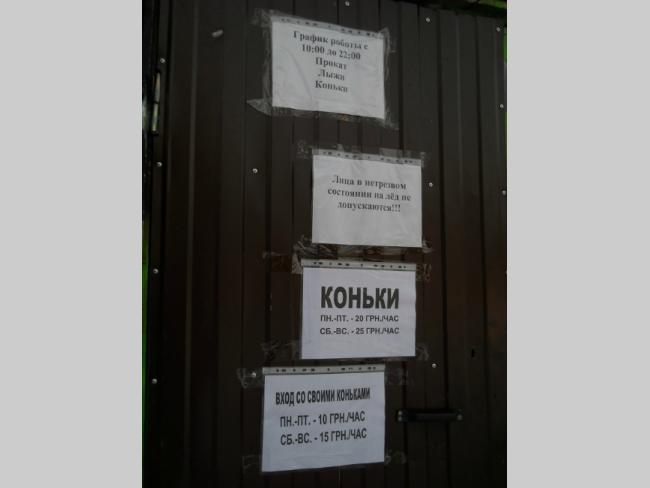 Вход со своими коньками: будни – 10 грн., выходные – 15.