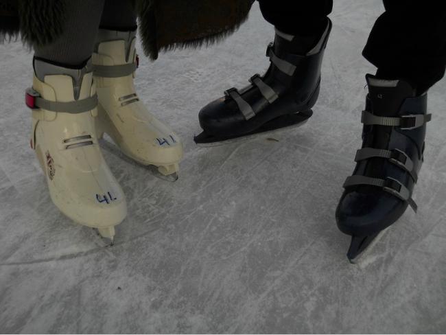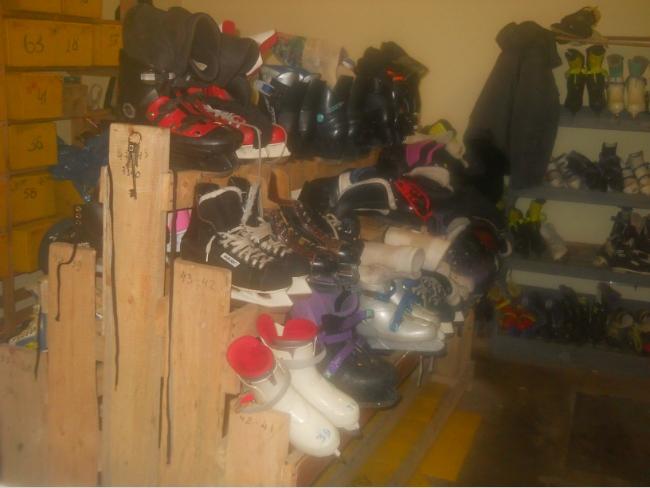 Залили каток уже по первому морозу. В небольшом помещении прямо у входа на лёд – пункт проката коньков и раздевалка. Внутри тепло, в ближайшей перспективе – чай-кофе. Коньков больше ста пар. Размеры – 29-47.
