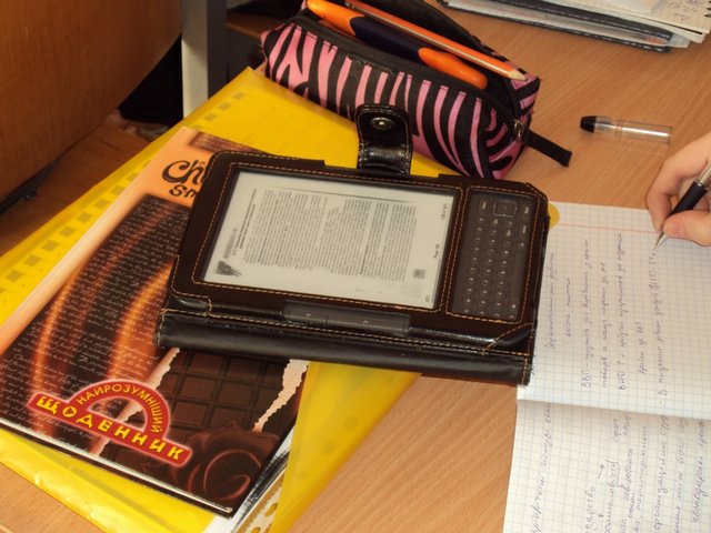 Очень порадовали электронные книги, лежащие на партах у учеников старших классов. Наконец-то школьники отучаются таскать с собой тяжелую школьную макулатуру.