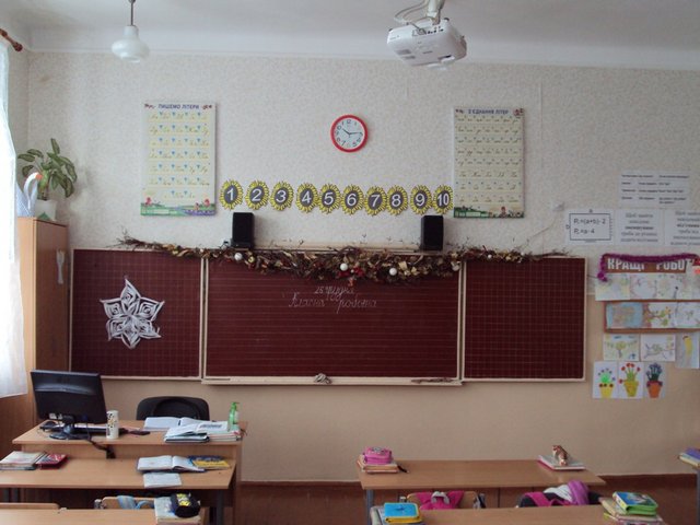 Вот уж чего не ожидал увидеть в учебном классе, так это персонального компьютера за учительским столом и вмонтированного в потолок проектора. Светлана Васильевна объяснила, что таких оснащенных техникой классов всего в коллегиуме 6. Это не считая кабинета информатики.