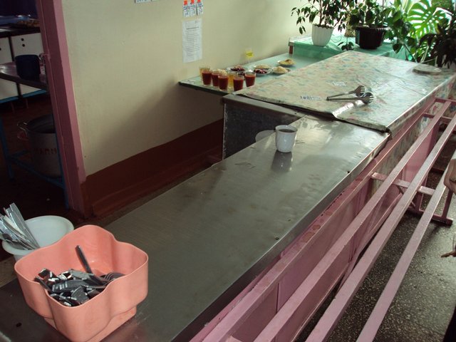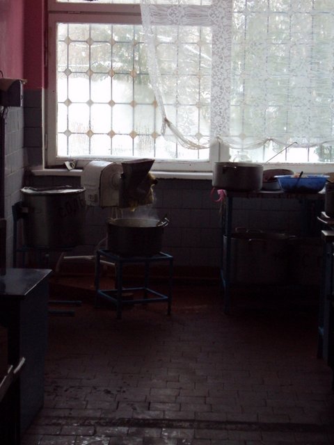 Это стол, на котором выдают еду школьникам, которые пришли покушать на перемене. Мне удалось сделать пару фотографий кухни, но вряд ли по ним можно сделать какой-то вывод о том, насколько все соответствует санитарным нормам и требованиям. Ну да ладно, оставим ревизию на кухне Араму Михайловичу Мнацаканову!
