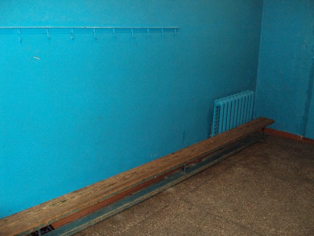 Раздевалки, которые находятся возле спортзала достаточно просторные. Есть лавочка и крючки, на которые можно повесить одежду.