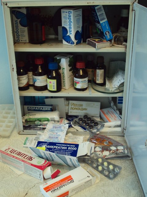 В медпункт дети чаще всего обращаются с жалобами на головную боль и боль в животе. Лекарства им назначают соответствующие. От головной боли – анальгин. От болей в животе в основном используют ношпу, спазмалгон и активированный уголь. Также есть препараты от аллергии, специальные мази от ушибов, жаропонижающие таблетки, перевязочный материал, лекарства от сердца и от желудка. Также есть мешок «Амбу» для осуществления искусственного дыхания. Медпункт работает с 8 до 16:00. Дети в школе учатся только на первую смену.