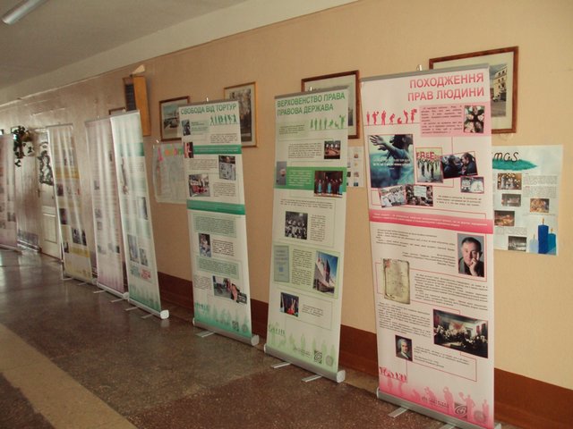 В коридорах учебного заведения расклеено очень много стенгазет с поздравлениями с новым годом, тематических газет к неделе права и других познавательных стендов.
