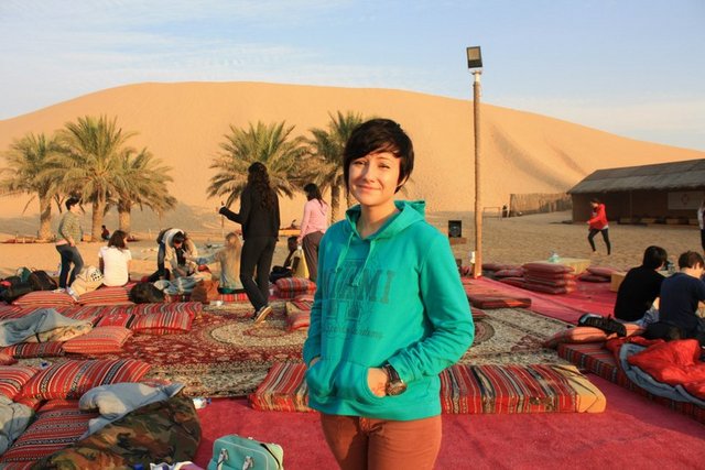 Після маленького, провінційного Чернігова тут вражає абсолютно все. Дороги з п’ятьма смугами в один бік, хмарочоси, дорогі автомобілі, щоночі миють вулиці. Розкіш, якої я не бачила ніколи у житті. В один із перших днів перебування нас водили на вечерю до палацу, 7-зіркового готелю, найдорожчого у світі. Спочатку було дивно бачити на вулицях людей у національному одязі, жінок у абайях (традиційна мусульманська довга сукня із рукавами для носіння у громадських місцях). Спершу незвично, а потім починаєш думати, що так краще, аніж виставляти на загальний огляд деякі частини тіла. Сьогодні до всього звикла, може, навіть стала розбалуваною.