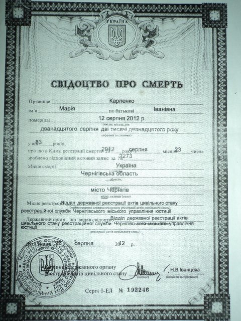 Всего ушло на лечение жены 13 735 грн, 3 540 грн – растраты на похороны. Это то, что по чекам, на самом деле сумма больше.