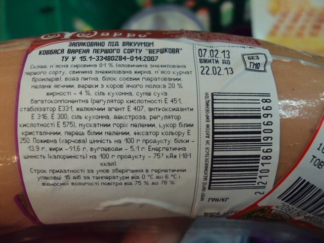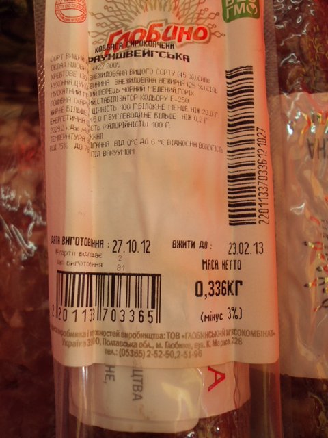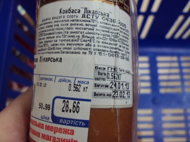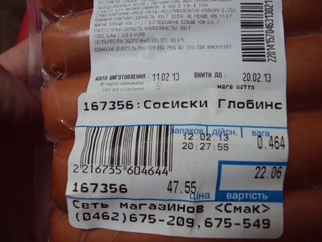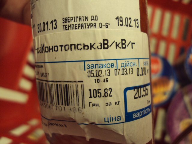 Срок годности двух кусков колбасы заканчивается через один день, поэтому на них я также обратил свое внимание, а в дальнейшем и внимание продавцов, работающих в магазине.