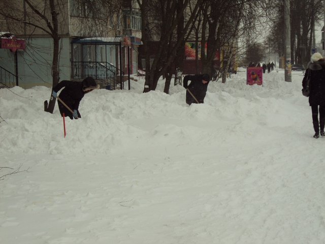 - Я работаю охранником. В данный момент расчищаю территорию для того чтобы хозяин аптеки мог припарковать свой автомобиль. За это мне не доплачивают, но по негласным правилам это входит в мои обязанности. Снега, конечно, навалило очень много. Но моих планов это не нарушило.