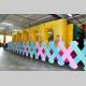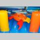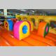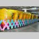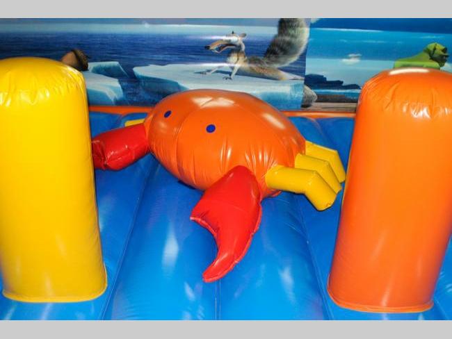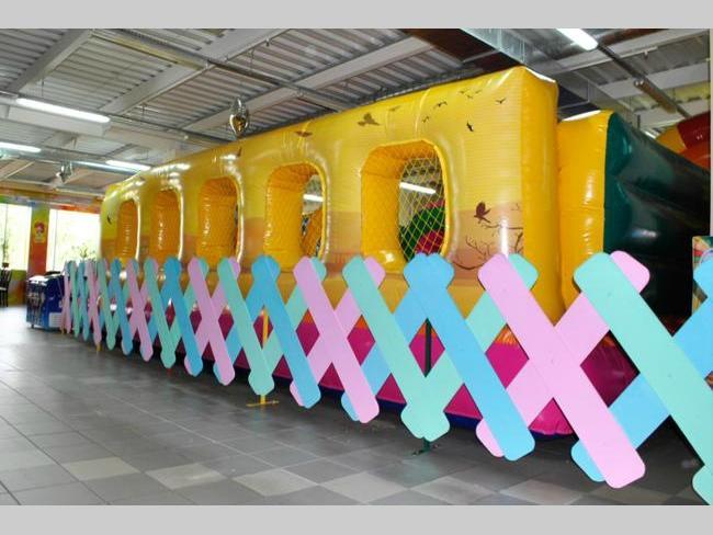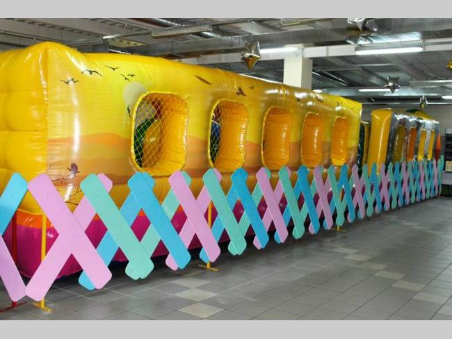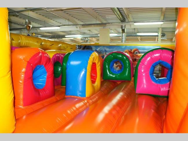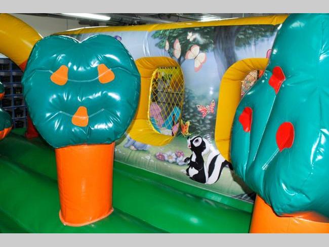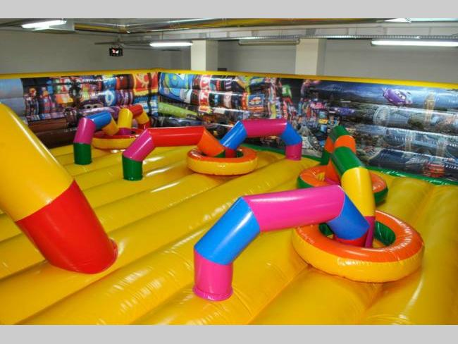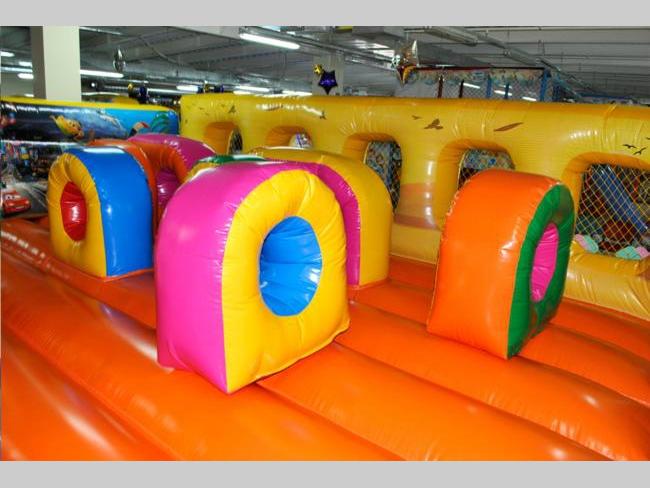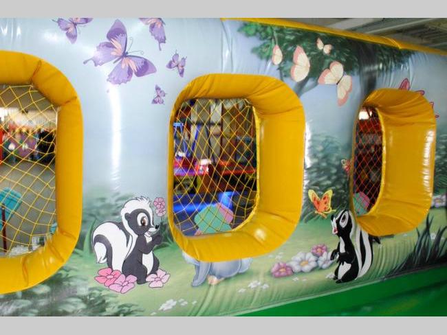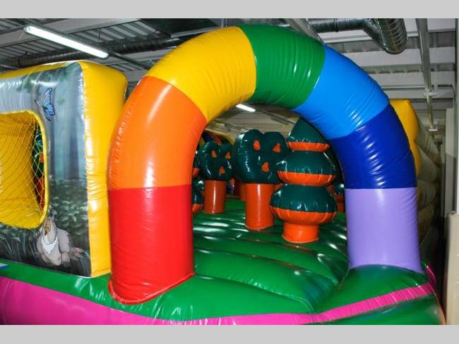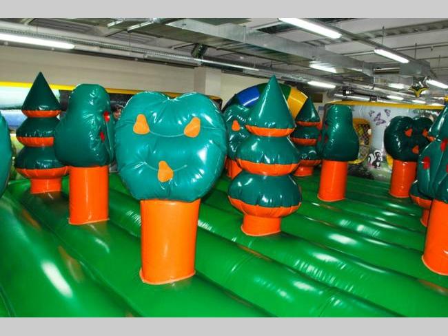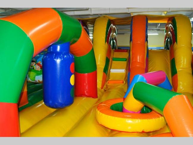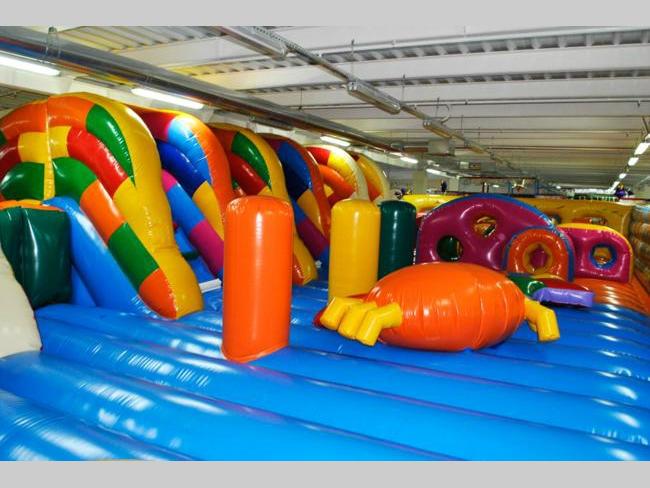 Надувное сооружение длиной 18 метров и 17 метров в ширину разделено на четыре тематические секции с горками, лабиринтами и множеством других элементов.