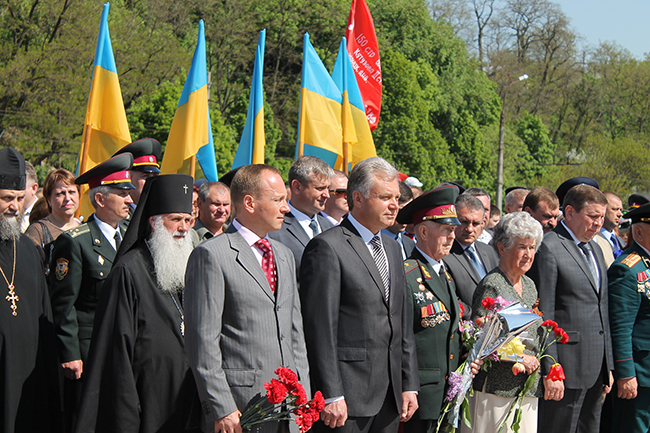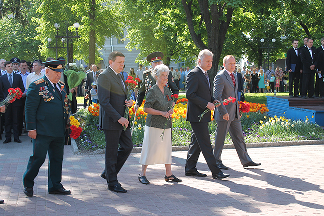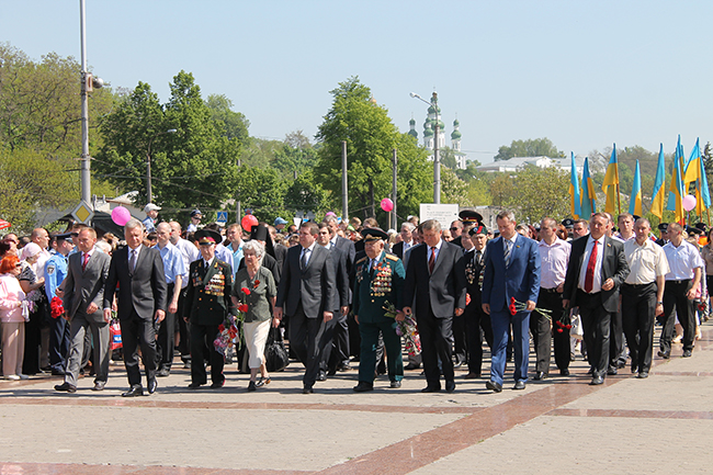 В Чернигове, председатель облгосадминистрации Владимир Хоменко, председатель областного совета Анатолий Мельник, Черниговский городской председатель Александр Соколов, народные депутаты Украины, ветераны Великой Отечественной войны, представители учреждений, предприятий, общественных организаций города и области возложили венки и цветы к братской могиле в сквере им. Н. Н. Попудренко, приняли участие в Торжественной ходе «Наследники Победы», митинге-реквиеме и возложении цветов к могиле Неизвестного солдата.
