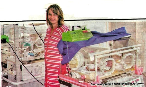 - Мы с мужем Николаем все 15 лет, с тех пор как поженились, мечтали о ребенке. Отважились на ЭКО (экстракорпоральное оплодотворение) - и я наконец забеременела! Мы рассчитывали на одного малыша, муж очень хотел дочь. Но я никак не ожидала, что стану мамой сразу троих малышей, хотя и обрадовалась этому. Николай до сих пор на седьмом небе от счастья. В больнице я с конца февраля, поэтому чувствую себя здесь почти как дома. Персонал очень хороший! Особенно мы благодарны заведующему отделением Александру Ивановичу, который прибыл на мои роды в нерабочее время, в субботу, и теперь постоянно следит за здоровьем моих малышей. Дети родились путем кесарева сечения. Первой - девочка, а за ней мальчики. Несколько дней после родов пришлось сильно понервничать - они родились очень маленькими и слабыми. Боялись, чтобы с малышами ничего плохого не случилось, они до сих пор на аппаратах и капельницах, и я за них очень переживаю! В первые дни после рождения прямо в реанимации их и покрестили. Мальчиков назвали Артемом и Иваном, а девочку — Анечкой.