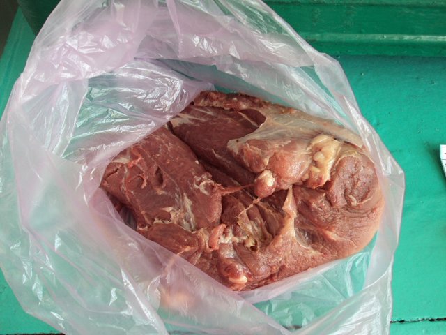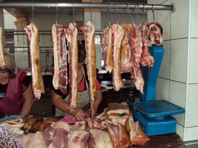 Мясо (свинина) – 55 грн. за 1 кг. Продавец мясного прилавка взвесила мне ровно 1 килограмм, за который я заплатил 55 гривен.