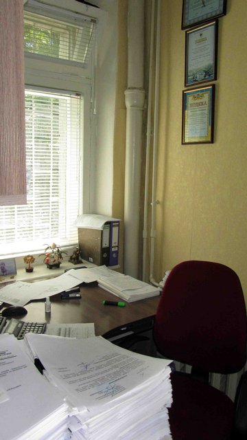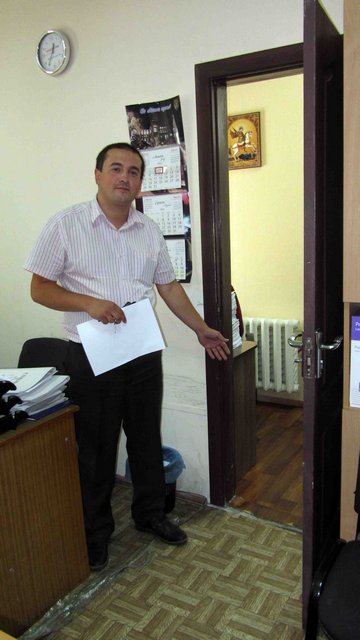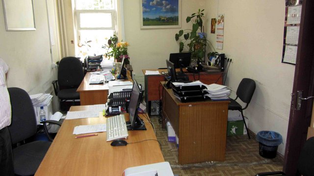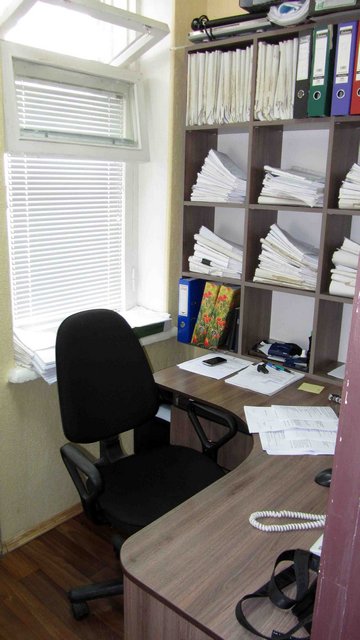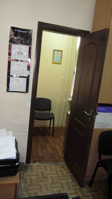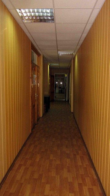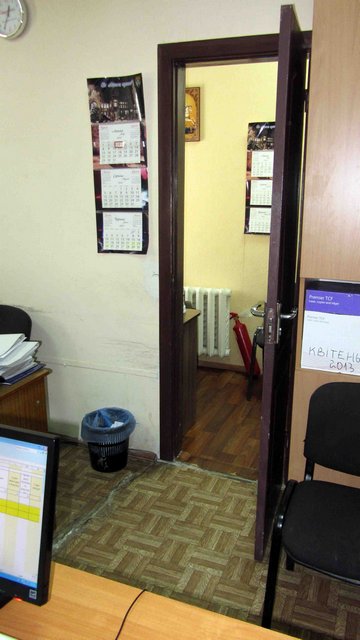 Как нам показалось, площадь первого кабинет была около 12-15 кв. метров. Рядом – смежный кабинет метров до девяти. Небольшие расстояния даже не давали возможности сфотографировать кабинеты панорамно. Андрей Рокач показал нам проход между кабинетами, в котором сутки назад стояла лужа бензина. Если бы начался пожар, покинуть кабинет сотрудникам было бы не так уж и просто…