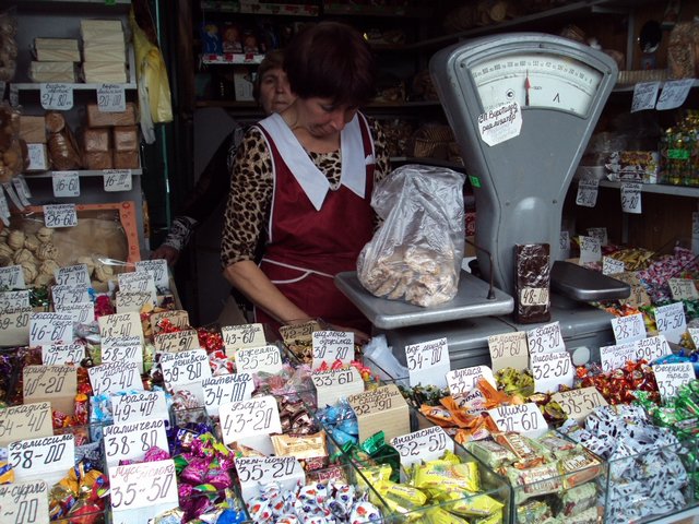 Конфеты – 34 грн. за 1 кг. Взвесили ровно 1 кг.