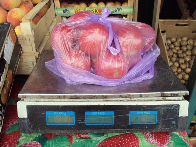 Продавец помидоров также взвесил мне овощи правильно.
