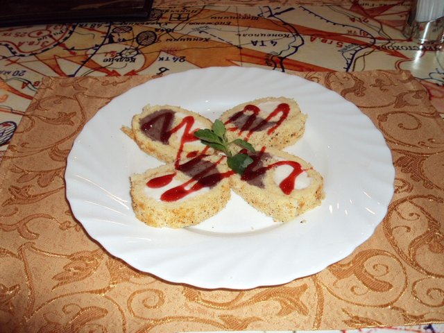 Запивали все это узваром и морсом стоимостью по 6 гривен каждый, 0,25 л. Десерт – «Победа революции», 20 гривен, 180 грамм.