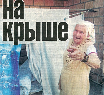 Миниатюрная бабушка аккуратно одета, при своем уме. Она добродушно улыбается и рассказывает, почему сидит на крыше, как Карлсон.