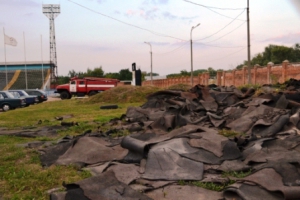 А поки капітальний ремонт ще не розпочався старе покриття бігових доріжок досі лежить купами на стадіоні біля туалетів.