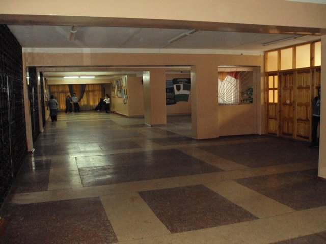Холл очень просторный. Чистоту там, судя по отсутствию какого-либо мусора, также поддерживают тщательно. В холле находится огромный гардероб, рассчитанный на 900 мест. Рядом с гардеробом на стене закреплены три зеркала.