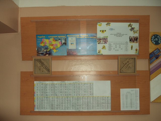 Хотелось бы отметить наличие отдельного стенда с расписанием уроков для младших классов. Расписание для малышей на отдельном стенде – это дополнительный плюс, так как маленьким школьникам, чтобы узнать расписание уроков, не придется толкаться в очереди со своими старшими и более высокими по росту товарищами.