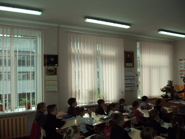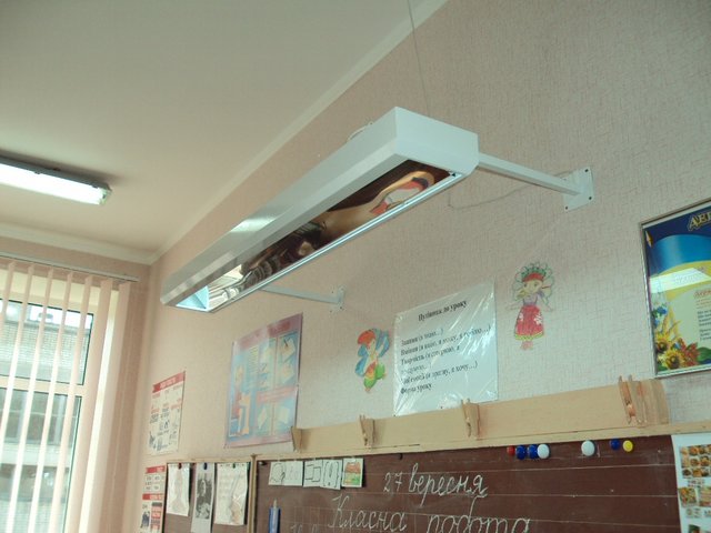 В одном из учебных классов я заметил специальную лампу, которая была установлена с целью более тщательного освещения школьной доски.