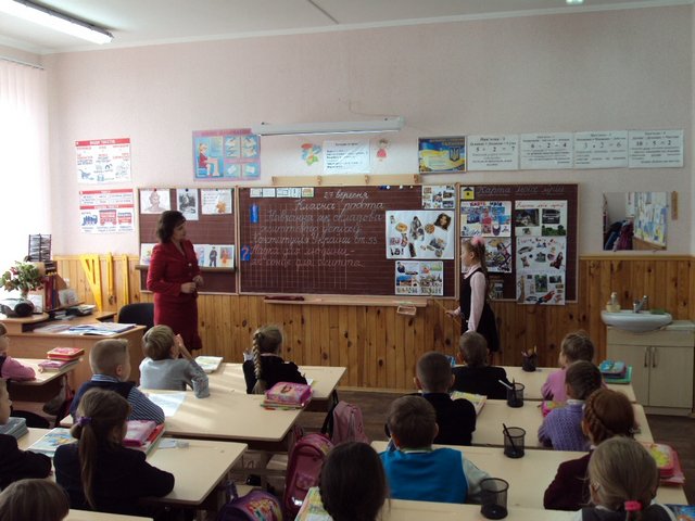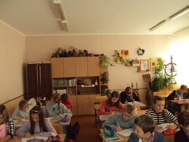 Классный руководитель – Махаева Виталина Александровна, преподает математику. Я люблю свою школу и не хочу что-либо добавлять. Мне и так все нравится. Любимые предметы: география и история. Хотя все же намного больше люблю историю, которую преподает Руденок Валентина Викторовна. На уроке истории я как будто сажусь в машину времени и переношусь во времена Киевской Руси. Географию преподает Стрепко Валентина Петровна. В столовой кушаю иногда. Трачу где-то 5 гривен. Все книги выдают в библиотеке. Родители покупают только методические тетради по 10 гривен.