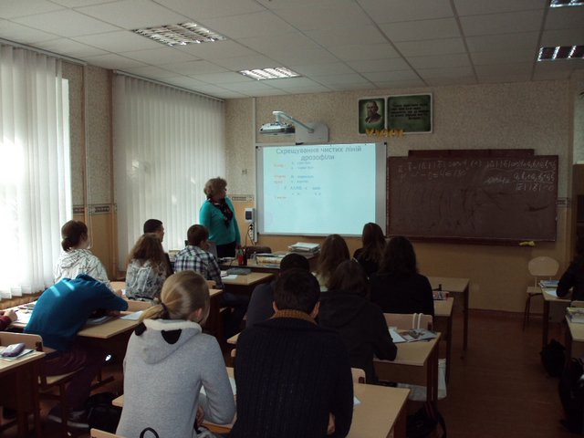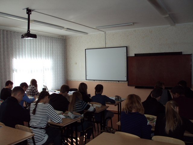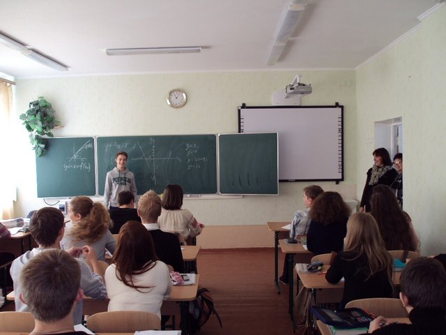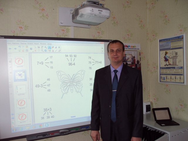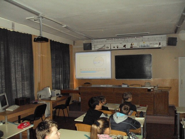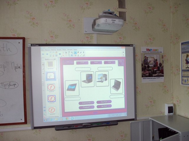 Также в кабинете информатики находится интерактивная доска Smart board, изготовленная в Канаде. Такие доски лицей получил также благодаря участию в Национальном проекте «Відкритий світ». Согласно этому проекту школа выполняла определенные задания, накапливала свои наработки, а затем презентовала их. 54 школы были выбраны по Украине для участия в проекте. Нам установили 5 мультимедийных комплексов с одной интерактивной доской, двумя мультимедийными досками и двумя досками Smart board, вместе с проекторами. Всего в лицее 7 электронных досок.