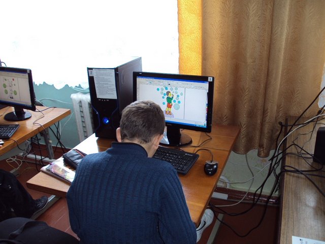 На данный момент мы начали только в этом году работать на планшетных компьютерах. Пока это работа с картами, навигатором, работа с видео и фото. Использовать планшетные компьютеры могут все классы, но пока по проекту с ними больше работают 7-е классы. Также по программе «Відкритий світ» лицею было предоставлено 24 ноутбука. Работают на них учителя.