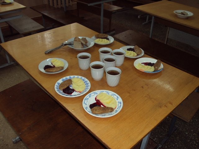 В день ревизии детей кормили картофельным пюре со свеклой и рыбной котлетой. На вопрос директора лицея «Вкусно ли кормят в столовой?» все дети с искренними и радостными улыбками на лицах хором ответили: «Да»!
