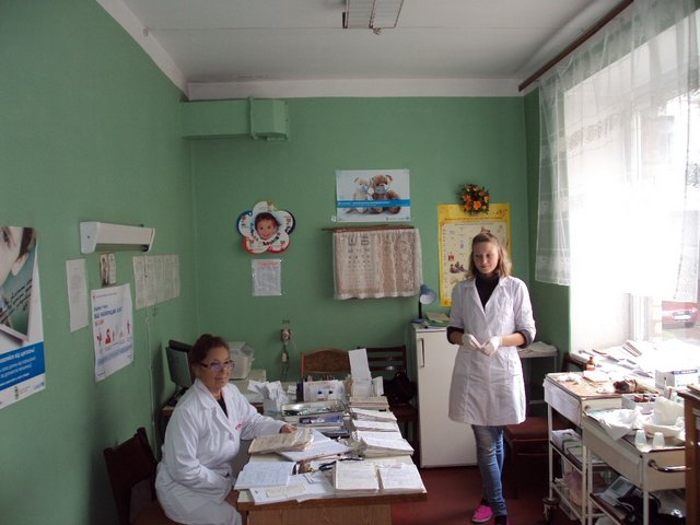 В медпункте работает три медицинских работника: два фельдшера и один доктор. О работе медпункта мне рассказала доктор Прелая Наталья Александровна.